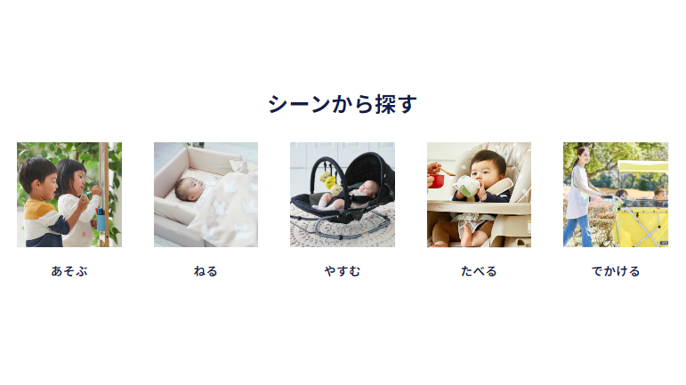 ベビーベッドやベビーチェアなどの室内アイテムやベビーカーなどの他にも、保育園・飲食店・宿泊施設など施設様向けのベビー用品の取り扱いがございます。