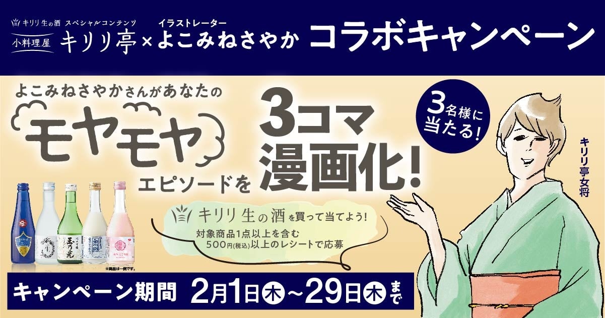 「キリリ生の酒」スペシャルコンテンツ『キリリ亭』×イラストレーター『よこみねさやか』コラボキャンペーンを2月1日(木)~29日(木)に開催!