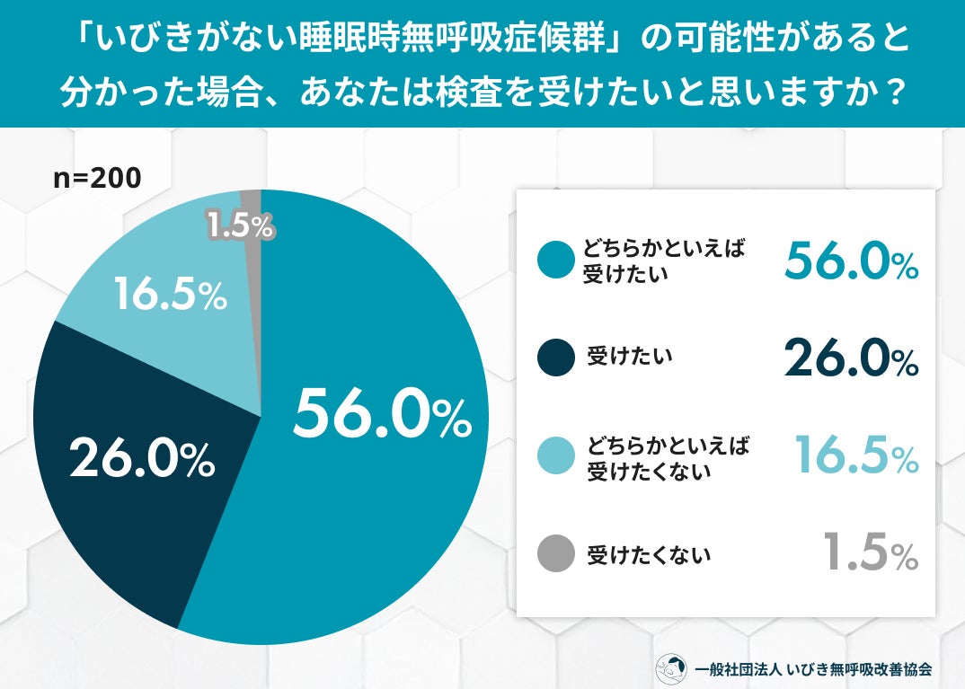 「家族の指摘」と「日中の眠気」が発見のサイン 潜在的なリスクに対し8割以上が検査に前向きな意向