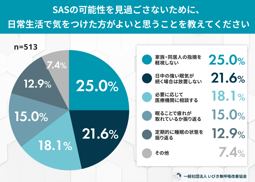 SASの可能性を見過ごさないために最も重要だと思うことは「家族・同居人の指摘を軽視しない」25.0%