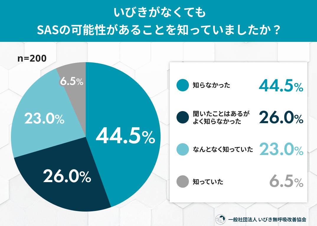 約4.5割(44.5%)が「いびきを伴わないSAS」の存在を「知らなかった」と回答