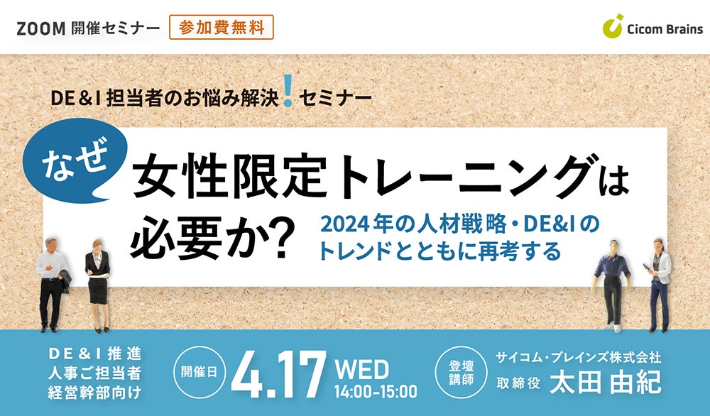 【なぜ女性限定トレーニングは必要か?~2024年の人材戦略・DE&Iのトレンドとともに再考する~】サイコム・ブレインズ、DE&Iプログラムディレクター太田由紀によるセミナーを4月17日(水)に開催