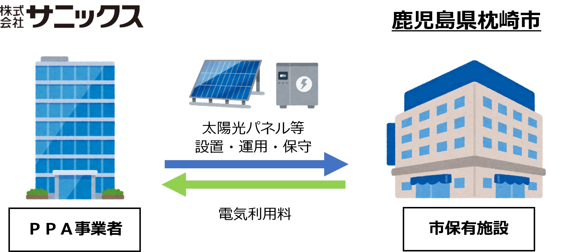 このたび、株式会社サニックス(本社:福岡県福岡市、代表取締役社長 宗政 寛)は、鹿児島県枕崎市の、「枕崎市分散型電源強化事業(PPA事業)」の受託候補者に選定されました。