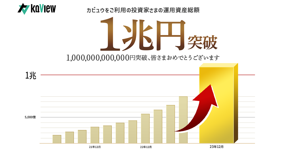このたび、カビュウをご利用中の投資家さまの運用資産総額が1兆円を突破したことを記念して、カビュウプライム1か月分無料特典が当たるキャンペーンを実施いたします。