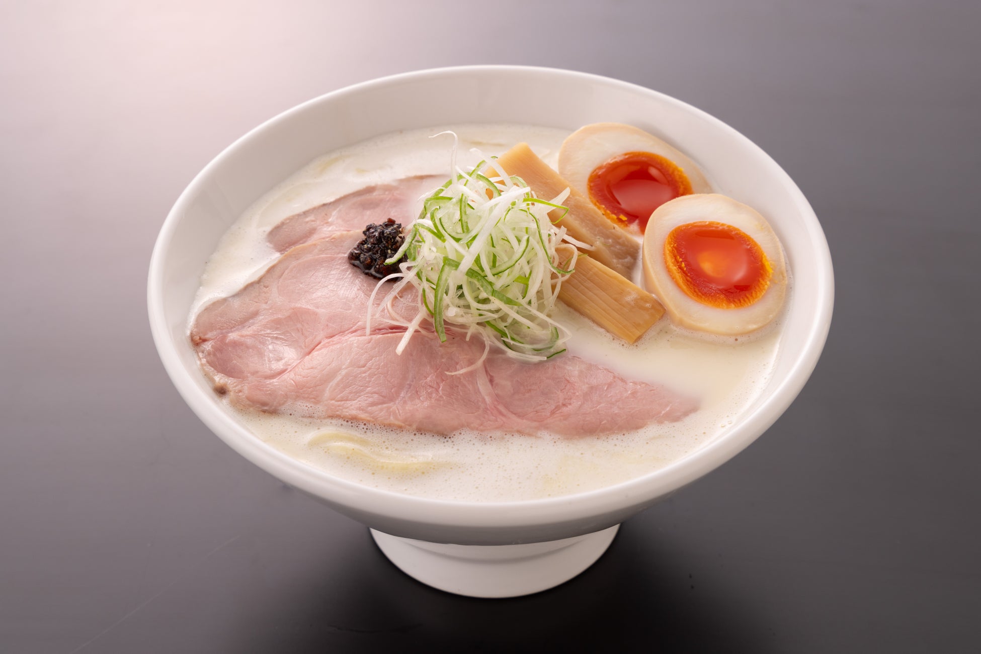 鶏のガラなどを⻑時間しっかり炊き上げたスープに、ホタテなどの異なる旨味を合わせた鶏⽩湯スープ。そこに合わせる麺は北海道産の⼩⻨粉、春よ恋、きたほなみ、ゆめちから、キタノカオリをブレンドした専⽤粉で製麺した⾹りと喉越しにこだわった麺。素材の持つ旨味と⾹りを存分に味わうことのできる鶏⽩湯ラーメンです。