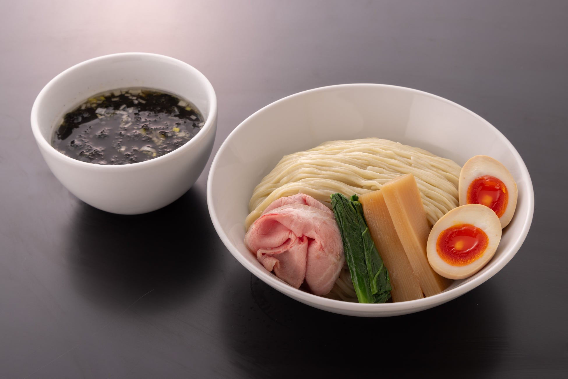 浜名湖産の⾼級混ぜ海苔と⼤量の煮⼲し、羅⾅昆布を使⽤した旨味たっぷりのスープ。混ぜ海苔は1枚1枚丁寧に炙る事により海苔の⾹りを最⼤限に引き出した、他では味わえない唯⼀無⼆のつけ麺です。