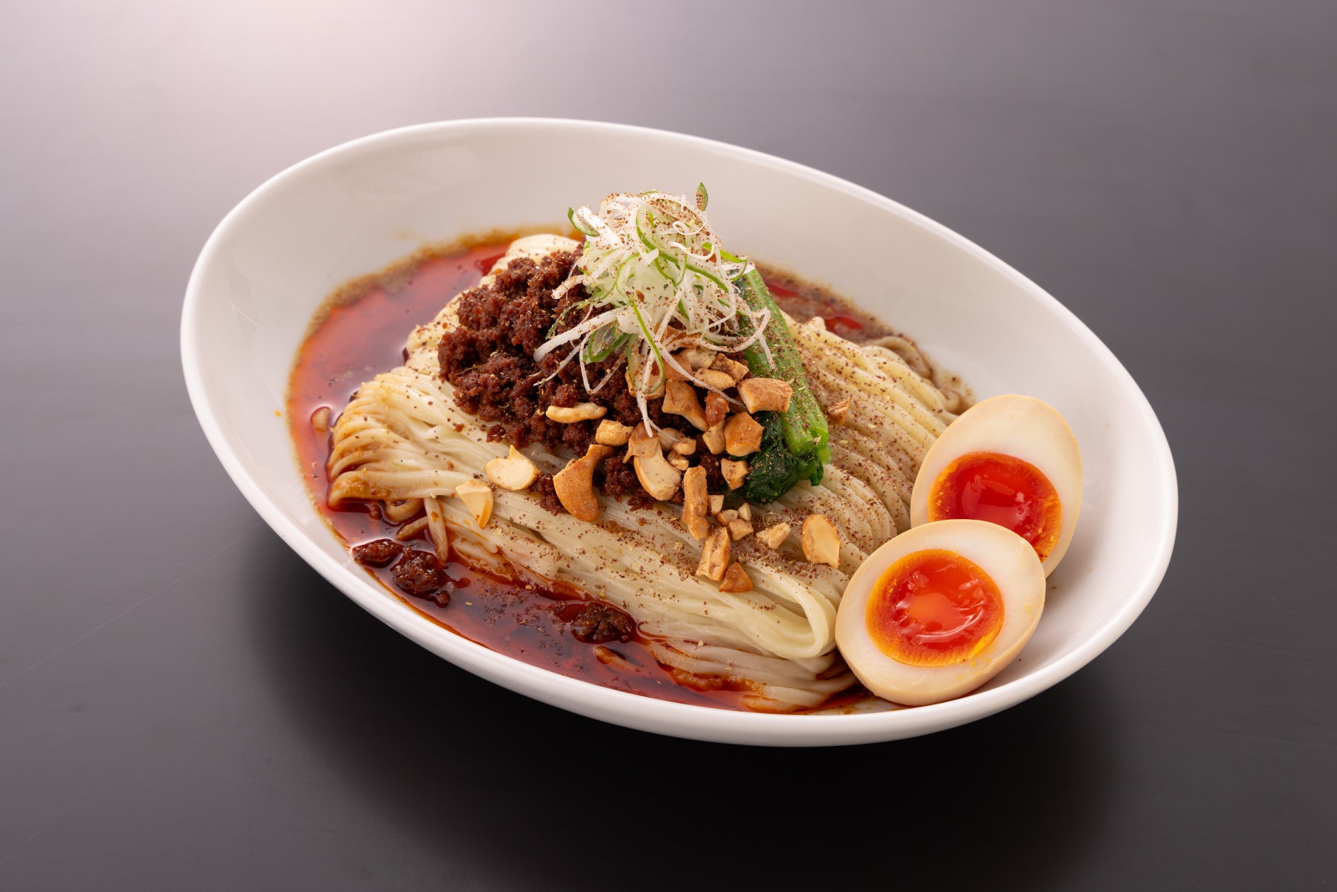 中国の鎮江市の名産【鎮江⿊酢】を使⽤した汁なし担々麺。 当店特製の辣油の⾹り、⾃家製芝⿇醤のコク、花椒(四川⼭椒)の痺れ、鎮江⿊酢の旨味、酸味があいまった癖になる⼀杯です。 ⿊酢を使⽤しているので、暑い夏にも⾷べたくなる⼀杯です。