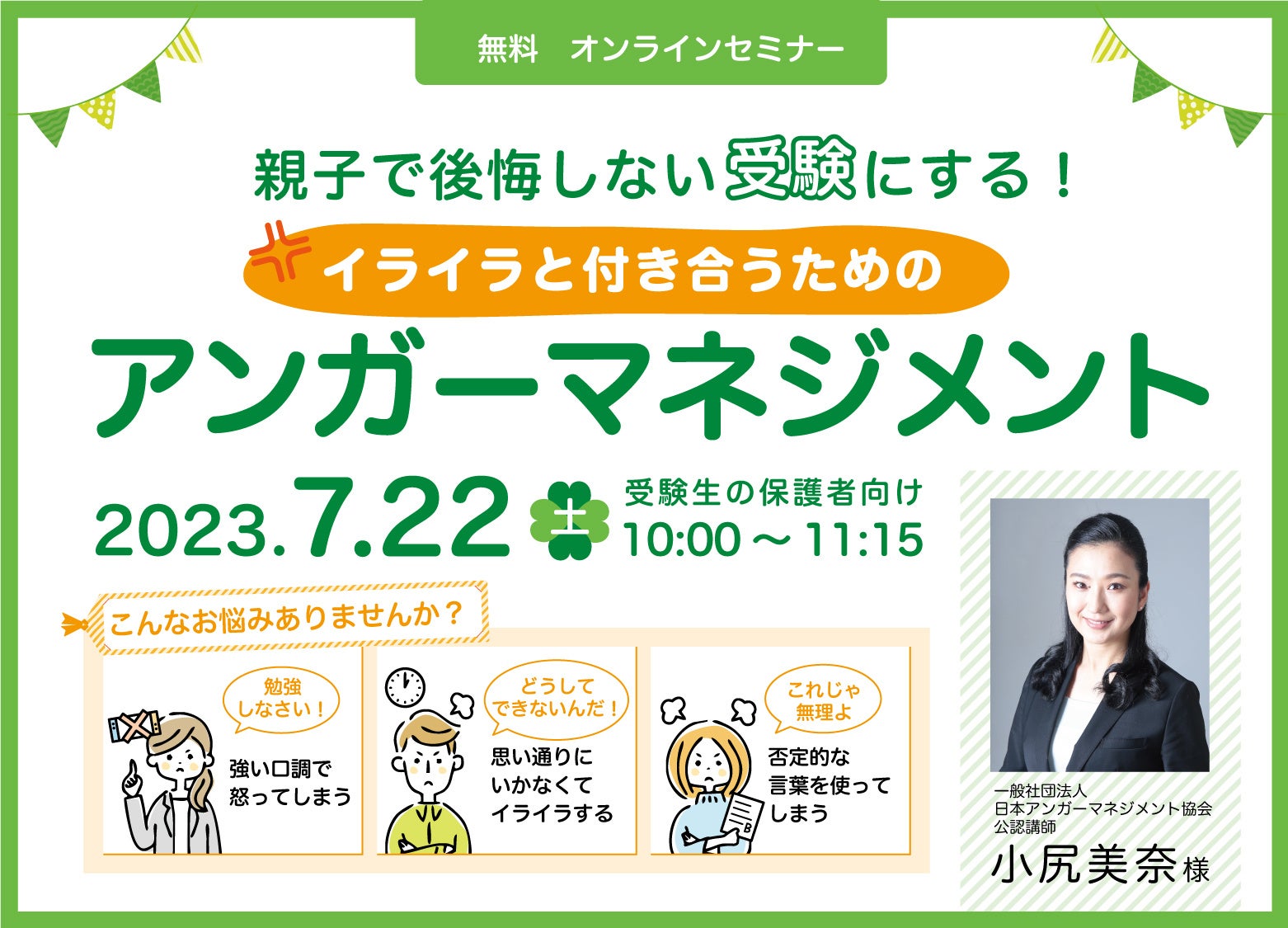 【受験生の保護者必見】7月22日、アンガーマネジメント無料オンラインセミナー開催