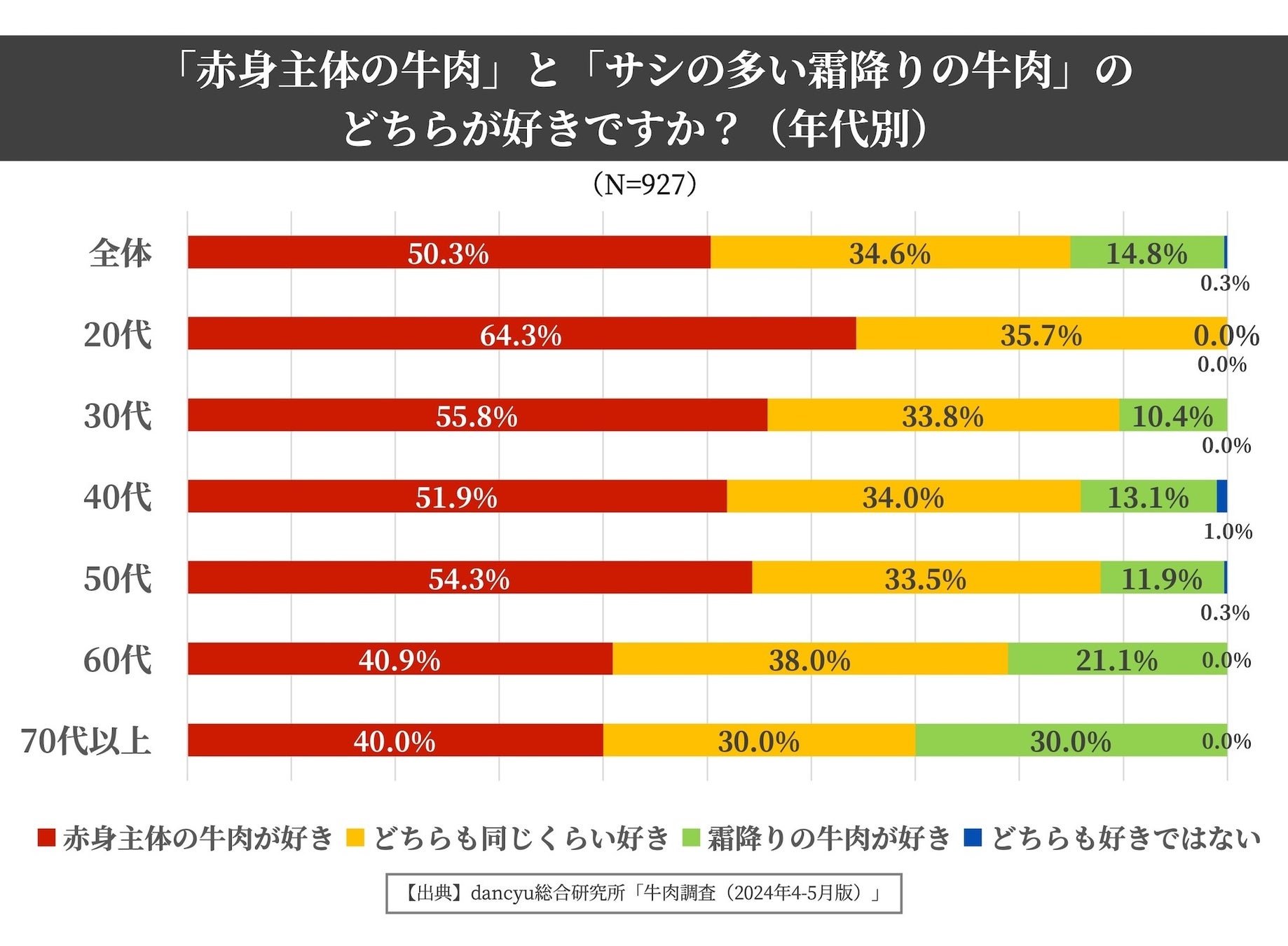 牛肉調査②】強まる牛肉の赤身志向。20歳以上の全ての世代で赤身肉派が霜降り肉派を上回る