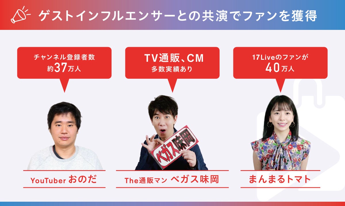 これらのプロライバーに加え、インフルエンサーをゲストに迎えたペアでの配信を提案。外部SNSとの連動配信により、ゲストインフルエンサーの抱えるフォロワーを視聴者に取り込むことが狙いです。