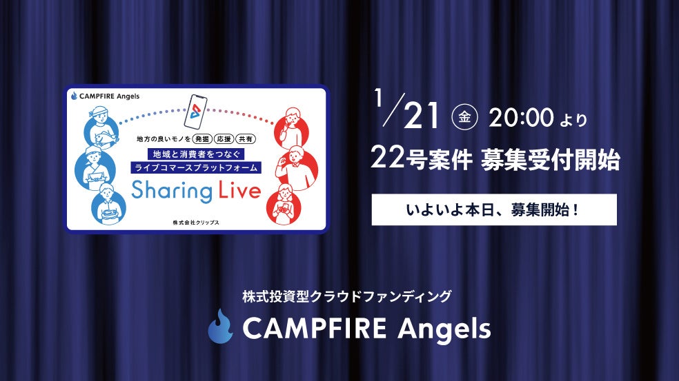 株式投資型クラウドファンディング「CAMPFIRE Angels」、本日1月21日(火)20:00より第22号プロジェクト募集開始