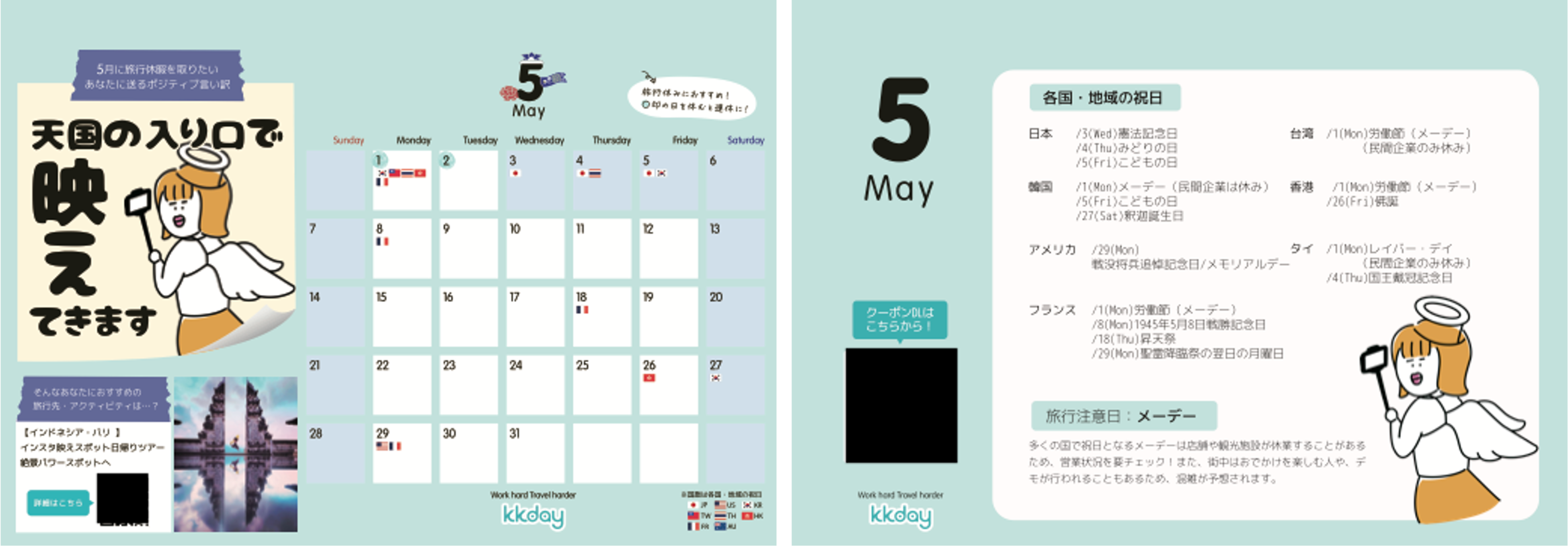 KKdayでは、先着400名様限定でKKday旅好きカレンダー無料プレゼントを実施します。