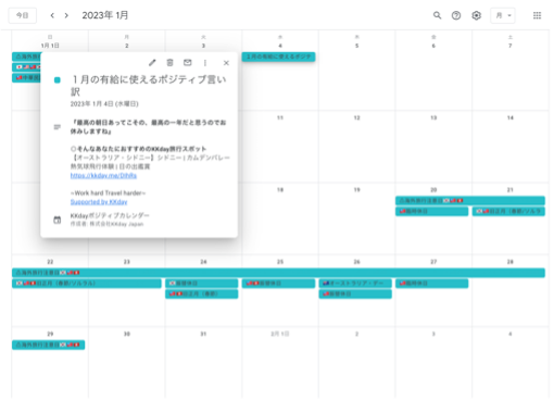 紙版のカレンダーのほかに、googleカレンダーでいつでも旅行の計画が建てられるオンライン版も用意しました。