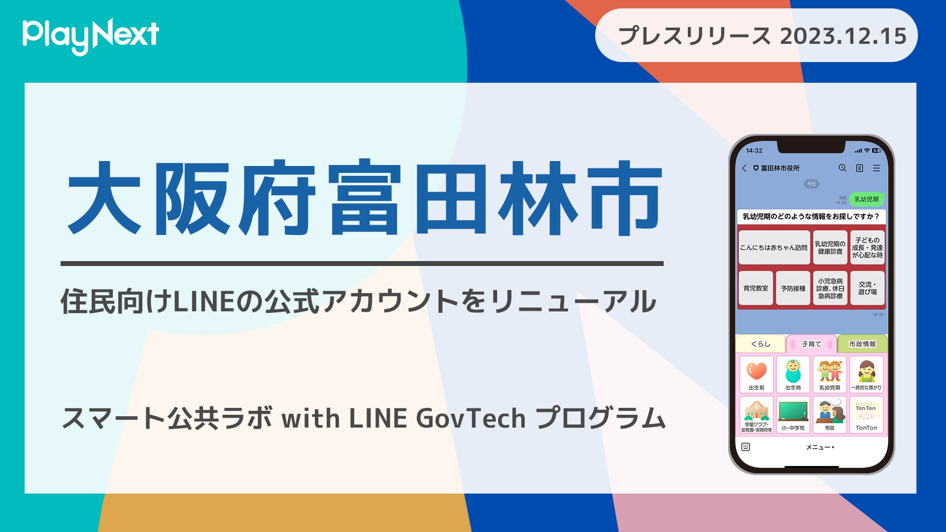 大阪府富田林市が住民向けLINE公式アカウントをリニューアル!プレイネクストラボ株式会社がシステム提供と構築を支援