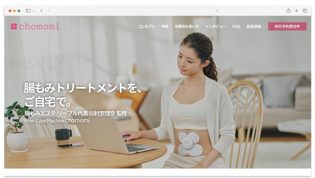 老舗メーカーが新開発!今秋新発売『腸もみガジェット「chomomi(チョモミ)」』のブランドサイトをオープン