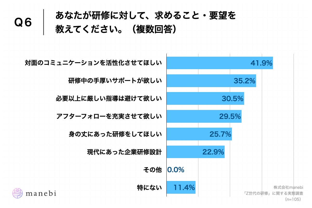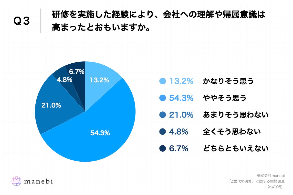 株式会社manebi(東京都千代田区、代表取締役執行役員CEO:田島 智也)は、昨年21卒で入社した若手社員105名を対象に、「Z世代の研修」に関する実態調査を実施いたしましたので、お知らせいたします。