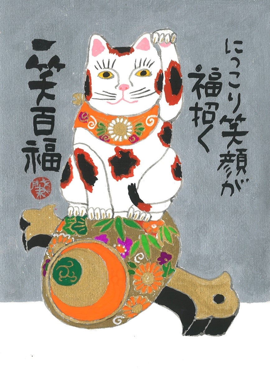 ❷原画を10万円以上ご購入のお客様 先着5名様に限り、岡本肇特製ポストカード 12枚セットをさしあげます (非売品)とってもかわいくて縁起のいい絵柄のポストカートセットです