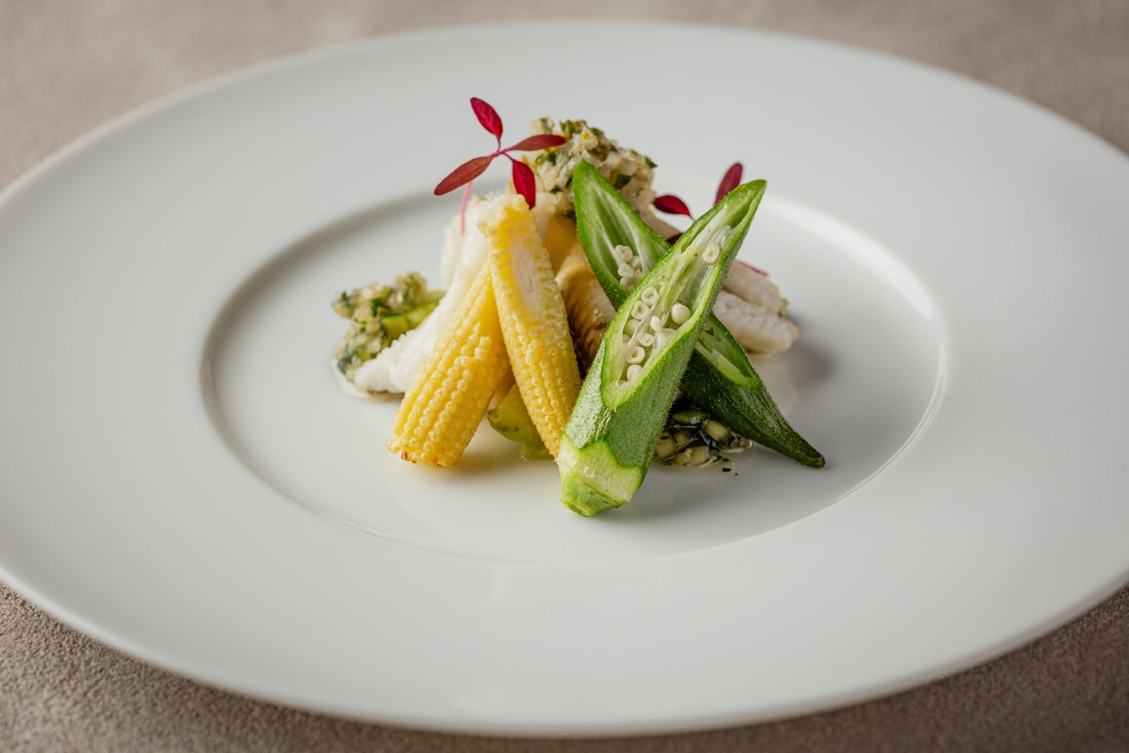 アラカルト、コースどちらでもお楽しみいただける季節限定メニューは、梅雨でもさっぱりと召し上がっていただける「梅雨穴子のフリット」や「トマトとブルーベリーのサラダ」、カポナータの酸味が食欲をそそる「鱸のポワレ カポナータソース」などを提供します(一部メニューを除く) 。