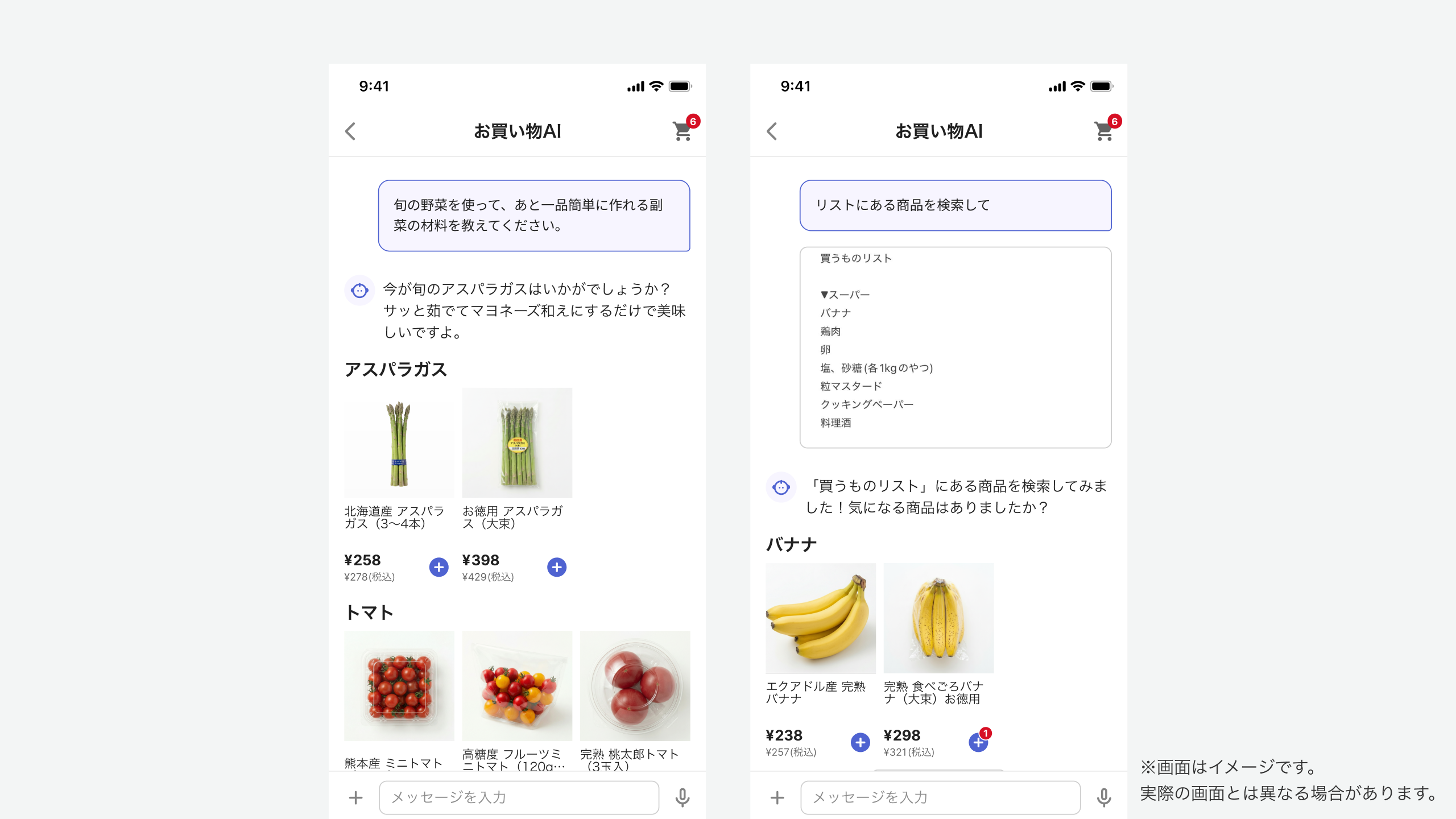 本機能により、お客様はチャット形式での自然な対話を通じて、献立の相談から商品の検索・カート追加までをシームレスに行うことが可能になります。