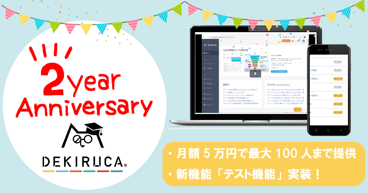 【2周年特別企画】Webマーケティング教育プラットフォーム「DEKIRUCA(デキルカ)」、月額5万円で最大100人まで提供&新機能を追加!