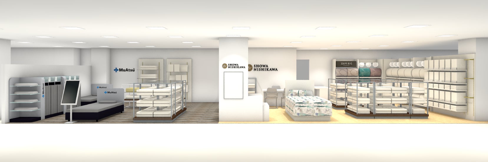 昭和西川株式会社(本社:東京都中央区、代表:西川惠)は10月16日(水)、MuAtsu(ムアツ)を中心とした多彩な寝具を取り揃えた「昭和西川ショップ」をさいか屋藤沢店・3階寝具売場にグランドオープンいたします。