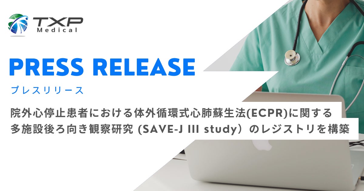TXP Medical、院外心停止患者における体外循環式心肺蘇生法(ECPR)に関する多施設後ろ向き観察研究 (SAVE-J III study)のレジストリを構築
