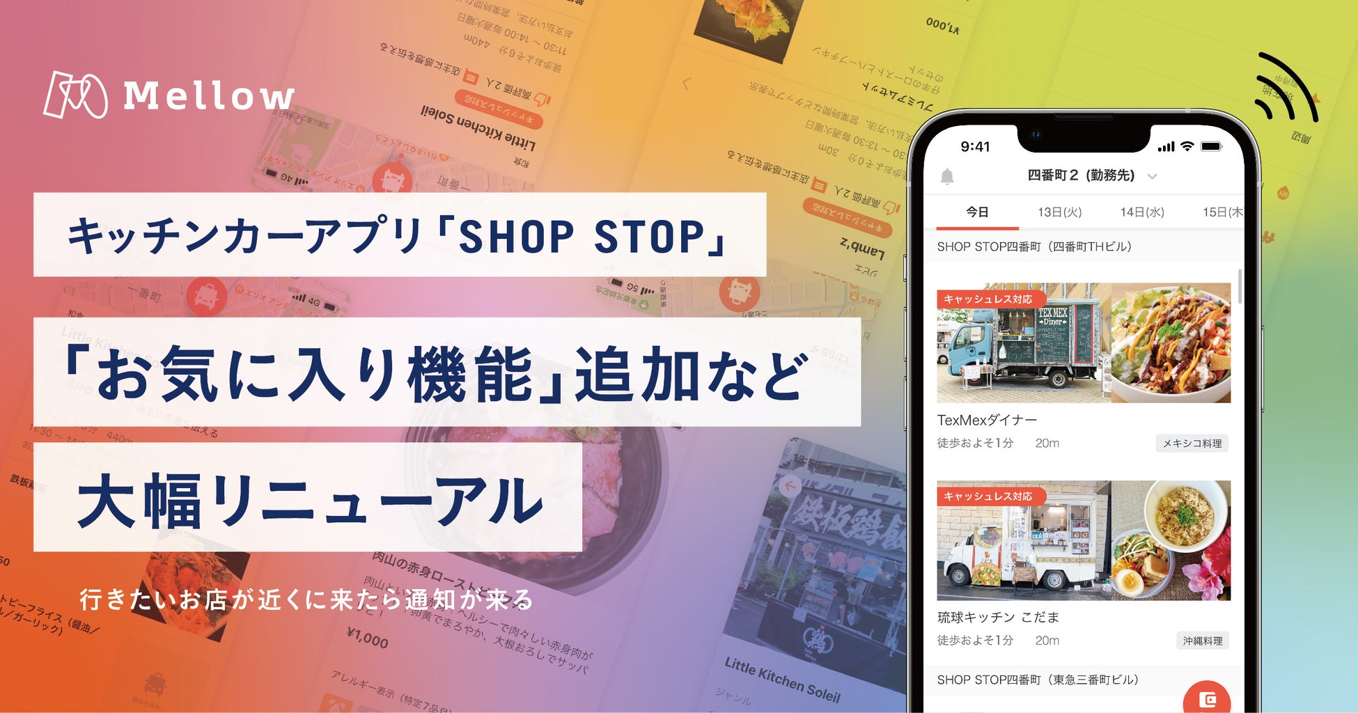 Mellow、1700店のキッチンカーと出会えるスマホアプリ「SHOP STOP」を大幅リニューアル。行きたいお店が近くに来たら通知を受け取れる「お気に入り機能」の提供を開始