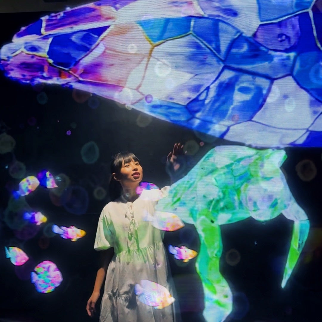 「ALICE IN WONDER WALL」は、人の動きに連動して映像が変化する体験型デジタルアート「3Dホログラム」の技術を活用した日本初※の没入型セルフスタジオです。