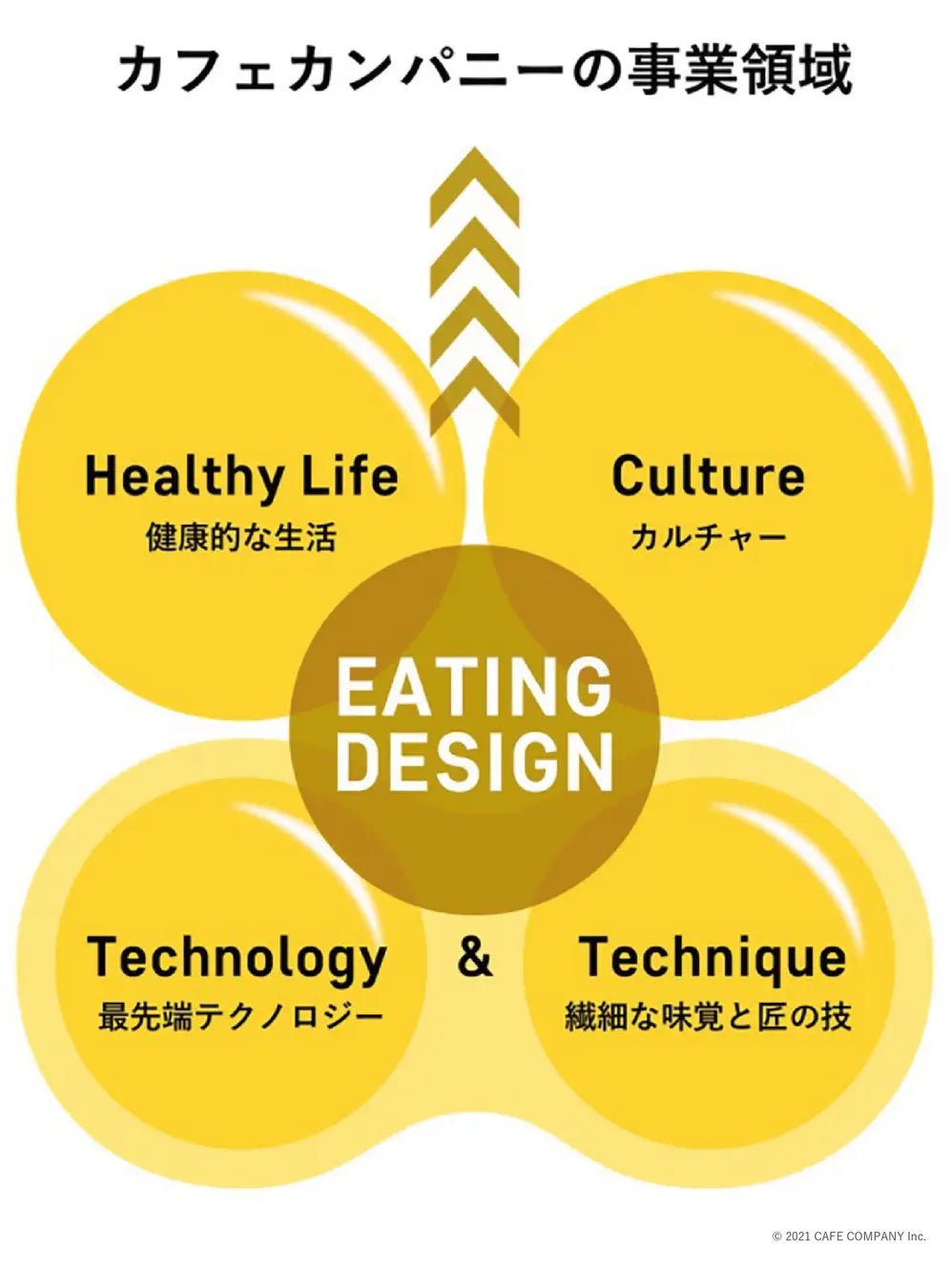 カフェ・カンパニーは、食×エンターテインメント、食×カルチャー、食×ヘルシーライフを「食べる」という行為の中で身近に楽しく提供していく取り組みとして、世界中のテクノロジーと日本の匠の技を未来に継承し、新しい価値に変えていくための事業を展開しています。