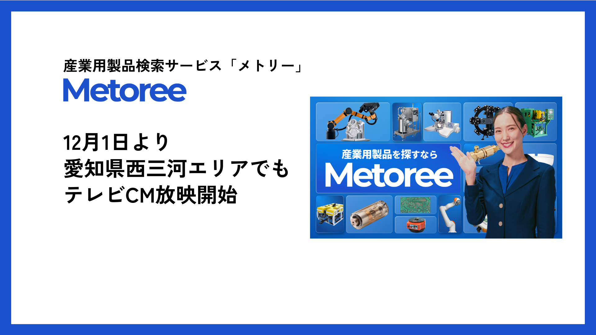 ZAZA株式会社(代表取締役:永津 豪、所在地:愛知県名古屋市)が運営する産業用製品検索サービス「Metoree(メトリー)」(https://metoree.com/)は、サービスのさらなる認知拡大を目的に、2025年12月1日(月)より愛知県西三河エリアでもテレビCMの放映を開始しました。