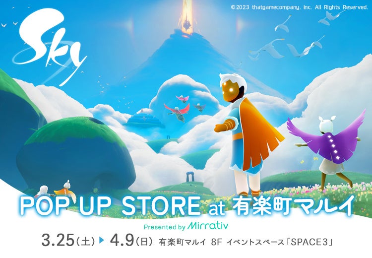 2023年3月25日(土)より、有楽町マルイのイベントスペースでポップアップストア「Sky 星を紡ぐ子どもたち POP UP STORE at 有楽町マルイ Presented by Mirrativ」の開催をいたします。期間は、2023年3月25日(金)~4月9日(日)です。