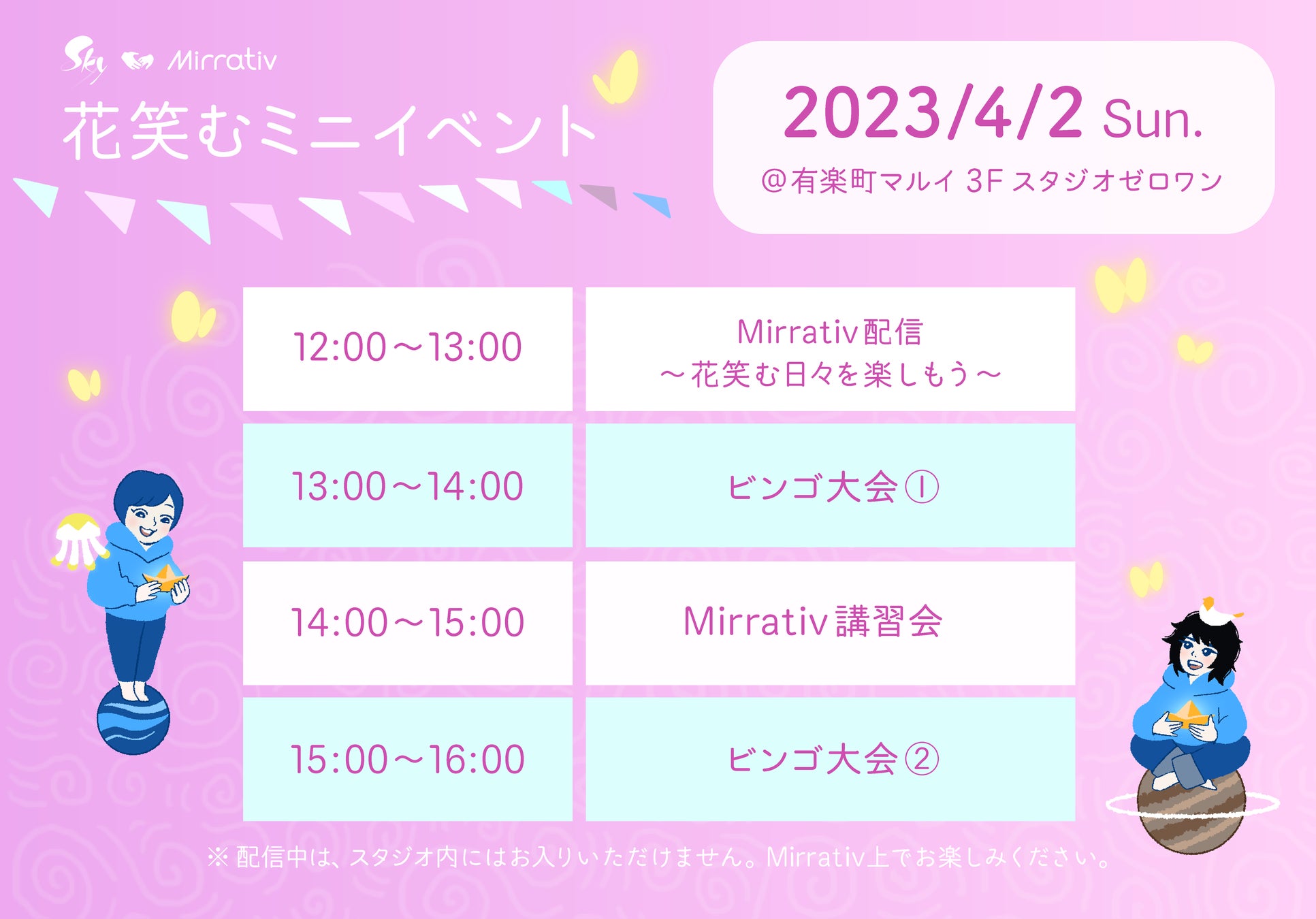 SkyブランディングメンバーによるMirrativ配信、Mirraitv講習会、ビンゴ大会 |