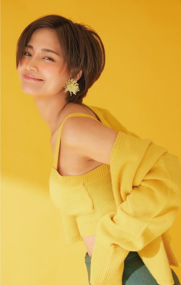 短め丈のトップス合わせでウエスト見せはもちろん、ジャケットと合わせて上品でクールな着合わせや