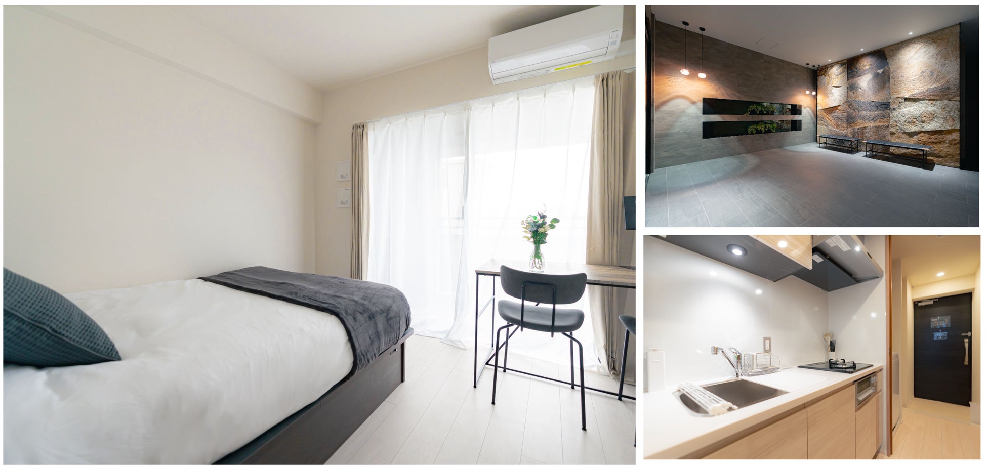 掲載物件は家具・家電・日用消耗品やインフラを完備しています。住む頻度や期間に合わせて、スムーズにお部屋探しを行うことができます。またお部屋探しから内見、契約までをワンストップでオンラインで完結できるため、入居に関する手続きも簡単に行うことができます。