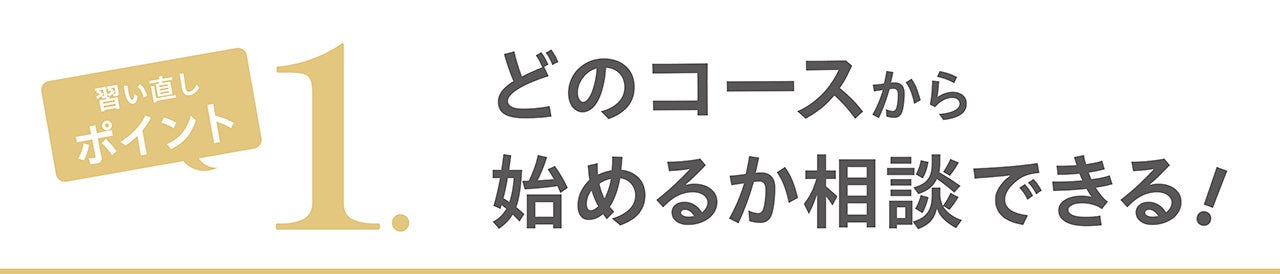 どのコースから習い直したいか迷われていても安心!どのコースから始めるか相談ができます。途中まで習ったけどもう着方を忘れてしまった、しっかり覚えているから次級から始めたい、など、ご希望や、再開に対して不安なこと、迷われていることがあれば気軽にご相談ください。