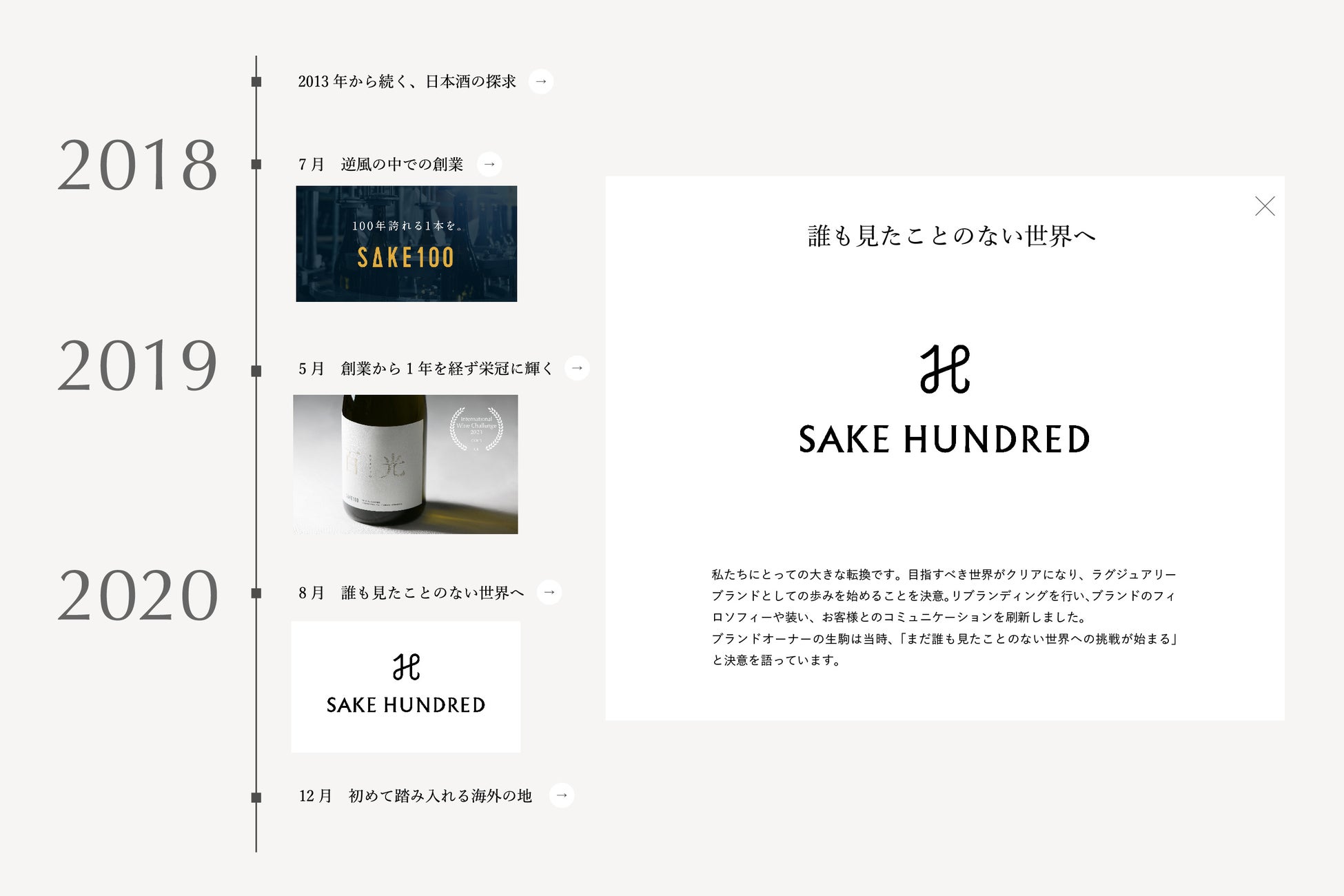 SAKE HUNDREDでは5周年を迎えるにあたり、これまでの軌跡をまとめた「SAKE HUNDRED's History」をブランドサイトにて公開しました。2018年7月10日にブランドを創業して以来、世界中のお客様の『心を満たし、人生を彩る』ために起こしてきた、さまざまなアクションを振り返ります。2000年にもわたる日本酒の歴史を受け継ぎ、その未来をより豊かにするため、これからも歩み続けます。