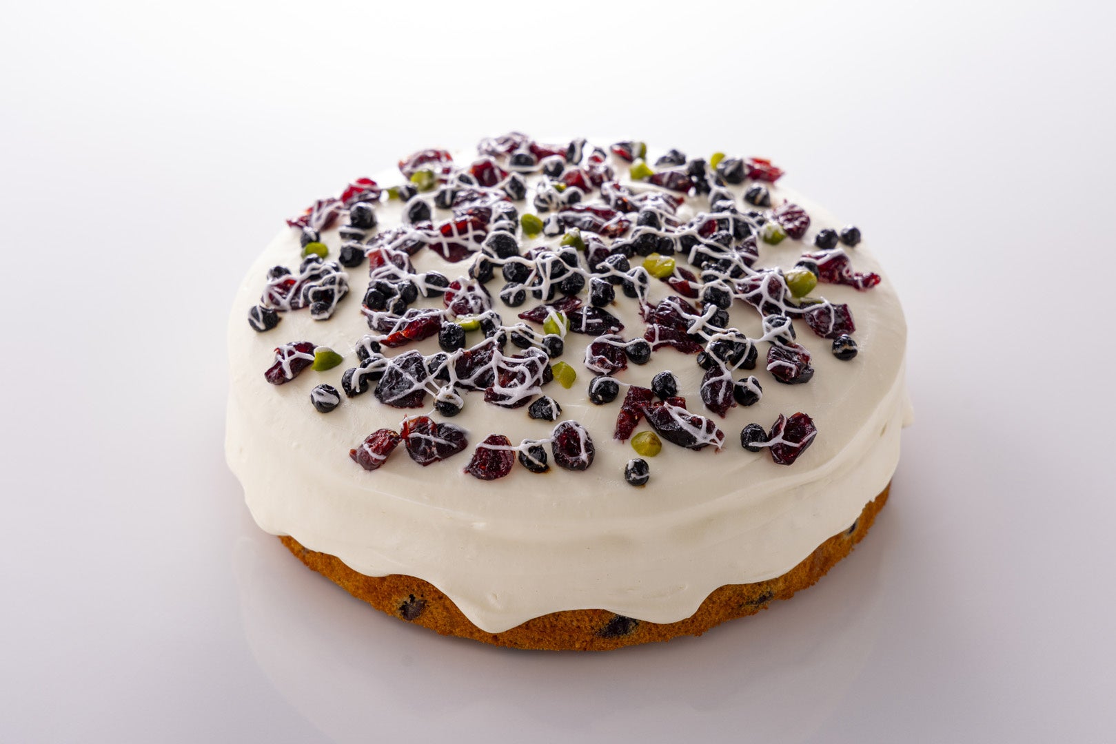 ピスタチオ風味の生地にミックスベリーのバタークリームとホワイトチョコレートガナッシュで仕上げました。