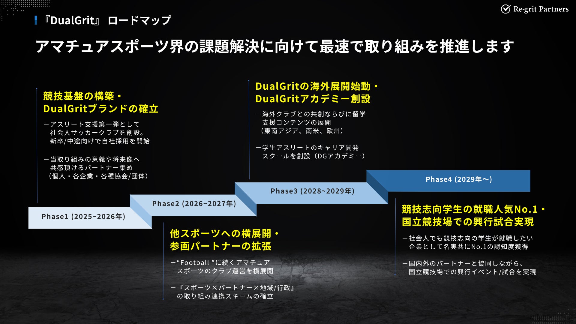 RGPは、この構想の実現に向け、競技・教育・キャリア・地域連携を統合した包括的アスリート支援プラットフォーム「Dual Grit」を立ち上げました。