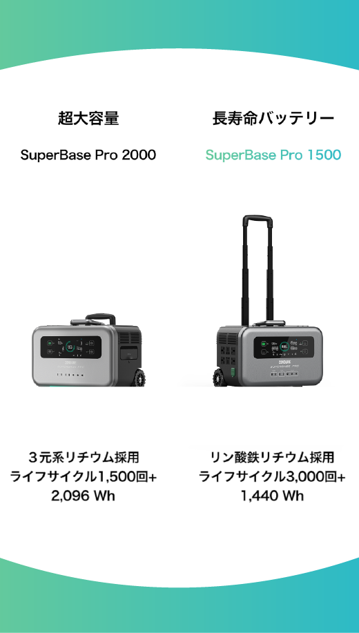 SuperBase Proは容量・電池寿命から選べる2機種を提供いたします。
