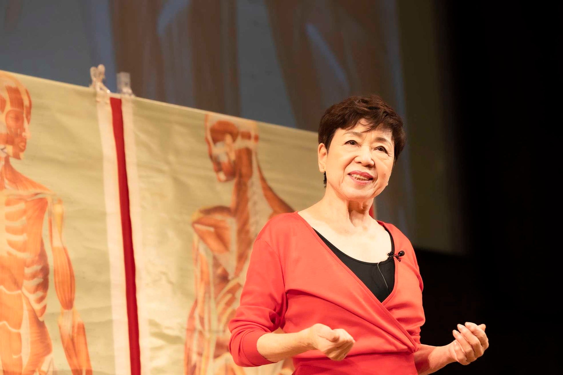 イベントの前半では、「脳と体をつなぐ」といったテーマで、「ただ体を動かすだけではダメ、脳がもとになって動かしているので、それを意識して手、指などを動かすことが大事。」「座っているときも、脳を使い、しっかり意識して膝を寄せ、足を閉じるだけでも、生きるための筋肉を育てられる。筋肉を使うことで骨が刺激されて作られるので、これを毎日続けることで、ゆくゆく骨密度も変わってくる。」といったお話がありました。また、菊池先生の、「私は最期まで体を使い切って人生を終わりたいんです。せっかく生きているんだから、明日もピシっと生きていたいじゃないですか。頑張って気を離さず意識して毎日を送ることで、今の状態よりも明日は良くなる。10年先ももっと良くなれる。」といったお話を、参加者の皆さまは大きく頷きながら聞き入っていました。