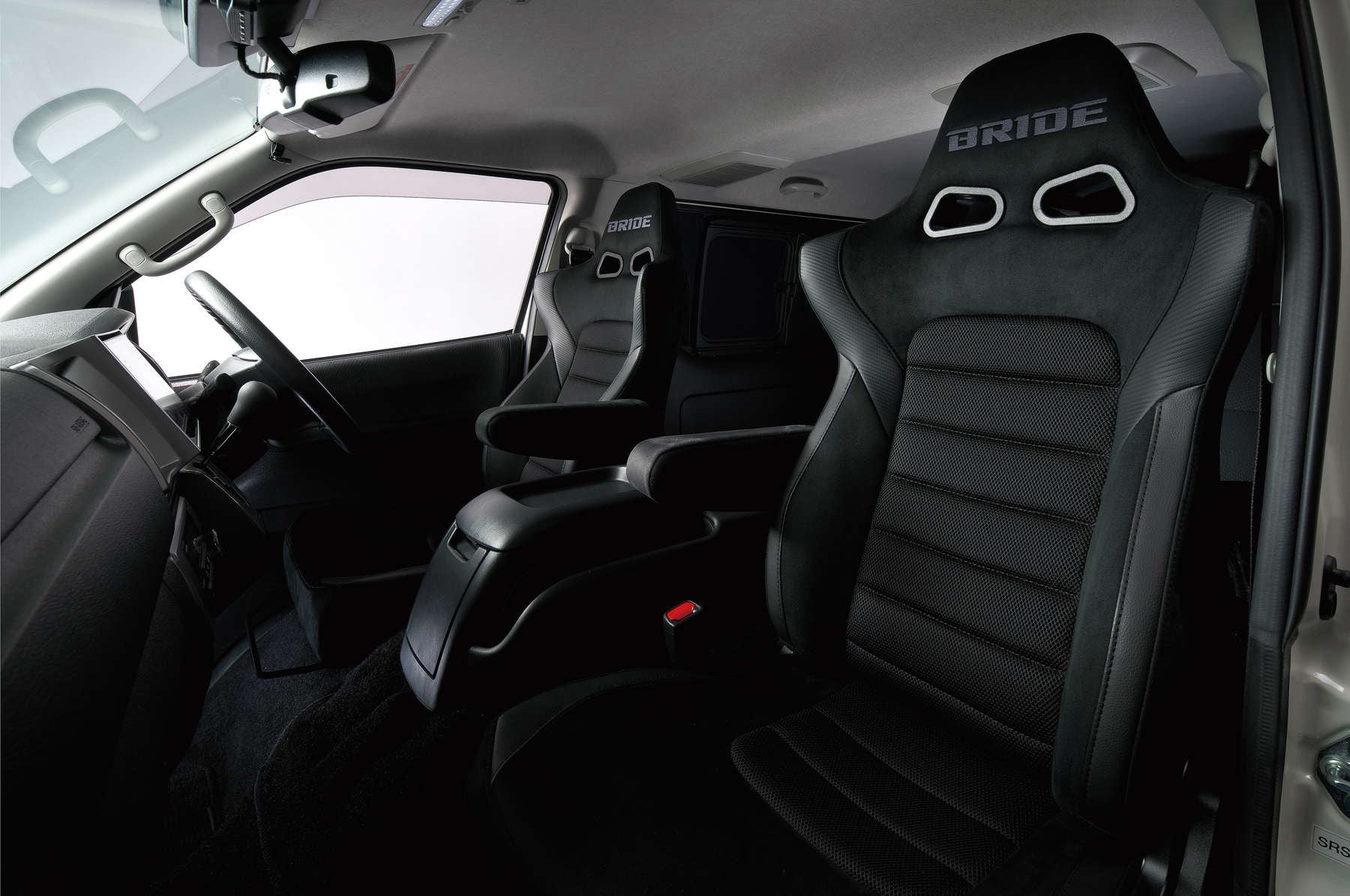 本製品は、当社が2024年3月に発売したモデルで、室内空間の制約が大きい(狭い)車両に社外シートを取り付ける場合に、内装に干渉しやすいショルダーサポート幅をコンパクトに抑えた設計です。また、運転席の乗り込み位置が高めなバン系の車種に取り付けた場合でも、乗降性を損なわないフラットな座面に設計したモデルです。より多くの車種のユーザーのカスタマイズ要望に応え、新たな価値をご提供する製品です。