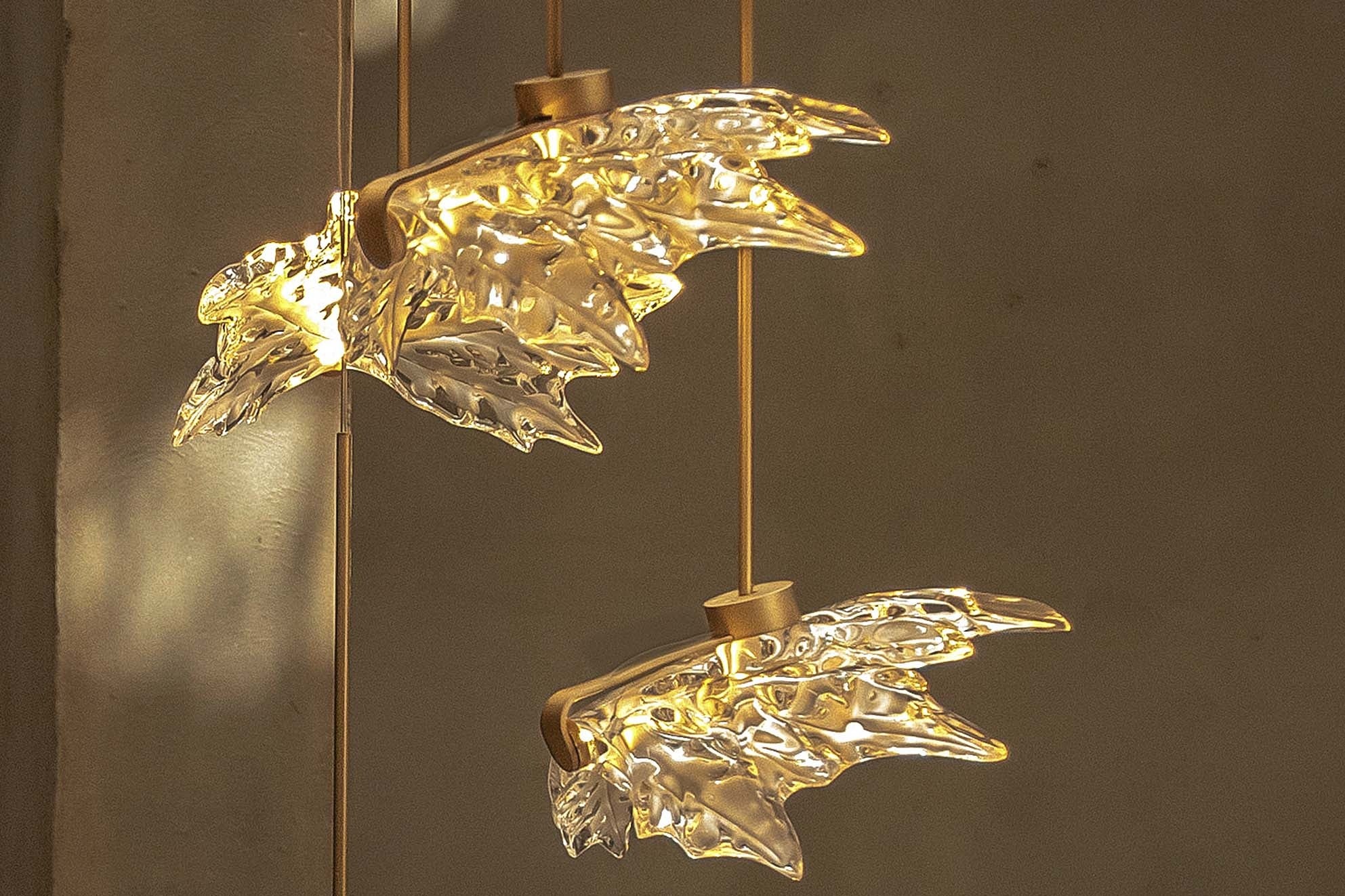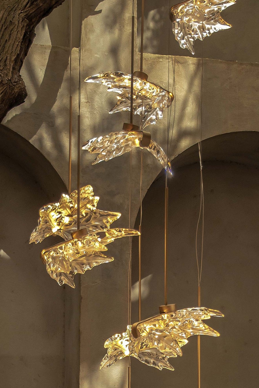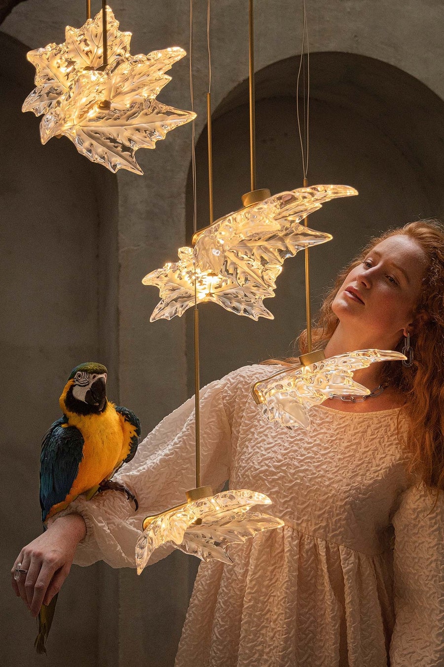 ラリック インテリアデザインスタジオは、マルク・ラリックのヴィジョンを反映したアートピースを通して、かつての瞬きに敬意を表します。時が止まり、宙に浮かぶクリスタルの葉が、光の反射とともにそのディテールを明らかにします。
