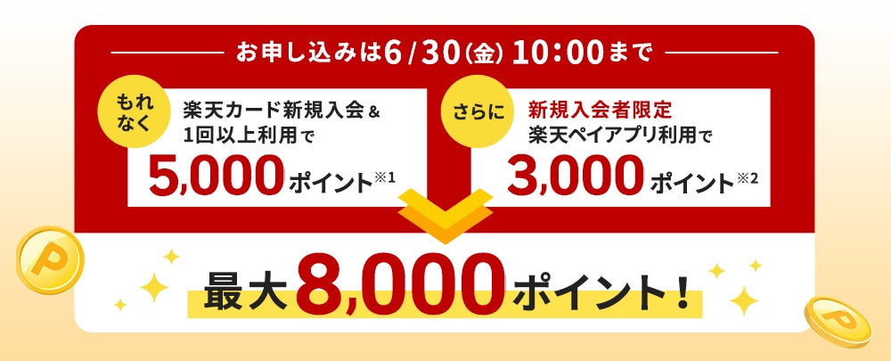 楽天カード新規入会期間:2023年6月9日(金)10:00~2023年6月30日(金)10:00