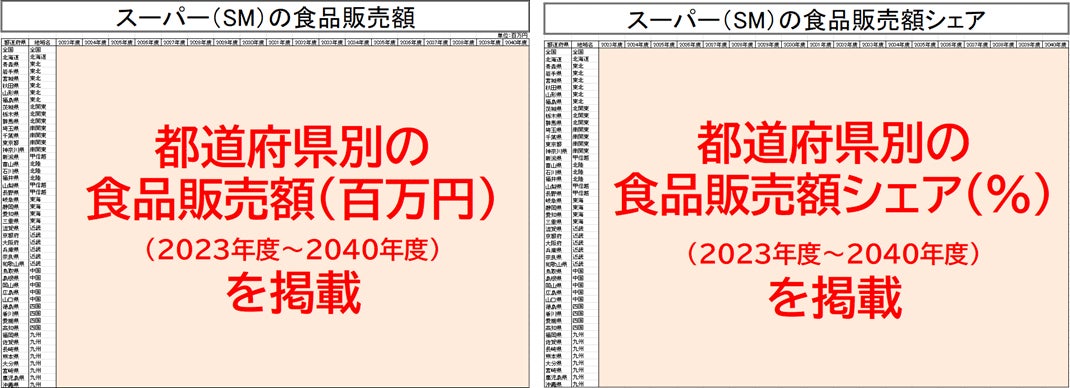 日本の食品市場の”見通し”や、今後のドラッグストアの成長、スーパーやコンビニなど他業態とのシェアなど、全国47都道府県/11地域ブロック別に2040年まで予測