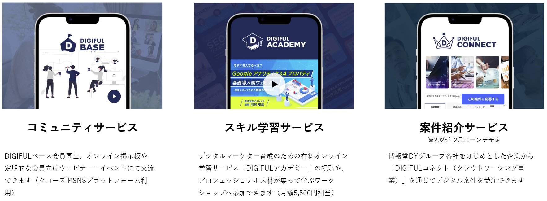 ※「DIGIFULコネクト」は、博報堂DYグループ各社をはじめとした企業からデジタル案件の紹介を受けることができるクラウドーソングサービスです。「DIGIFULコネクト」の案件を通じて、仕事の種類、幅を広げることが可能となります。2023年2月にローンチ予定です。