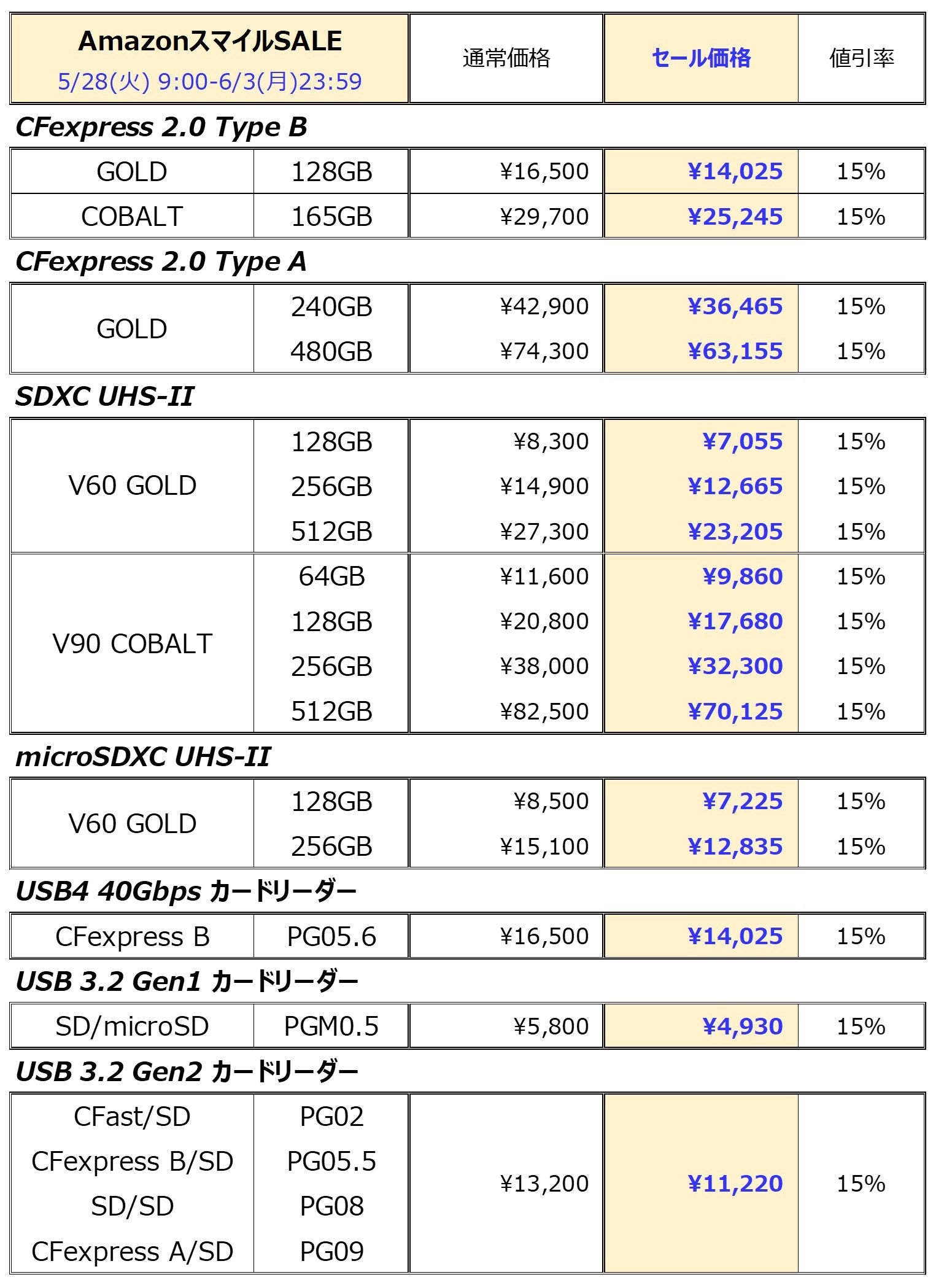 ProGrade Digital Inc.は、Amazonで5月28日(火)午前9時から6月3日(月)23時59分まで開催されるAmazon「先行セール」「スマイルSALE」で、メモリーカードとカードリーダーをセール価格でご購入いただけます。セール価格の詳細は価格表を参照してください。ただし、セール価格は在庫がなくなり次第終了となります。