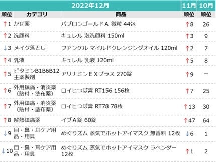 ・インバウンド購買ランキング 2022年12月の売上個数ランキングTOP10