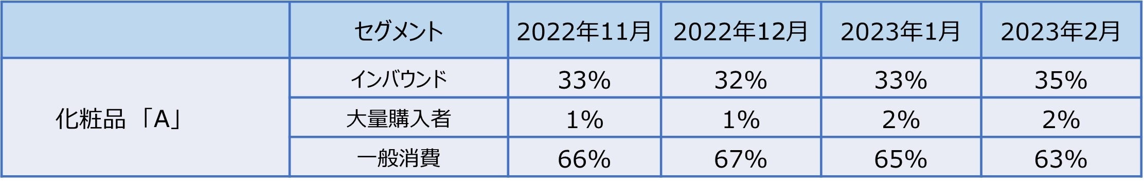 セグメント別購買トラッキング…インバウンド購買、大量購入者、一般消費者に分けて、商品の売上げ推移を見ることができます