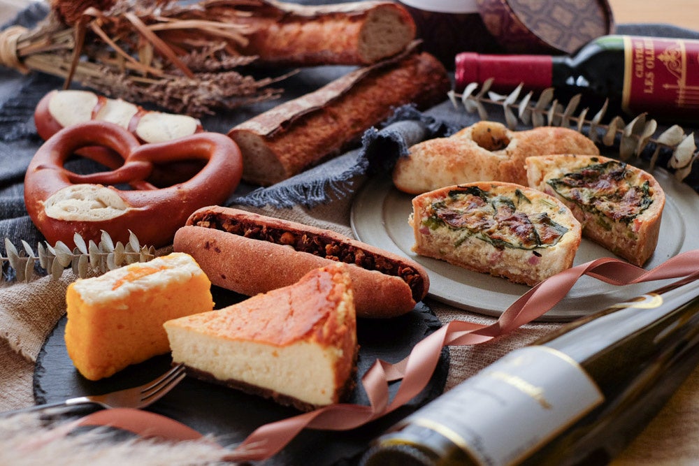 本特製セットは、大人になった娘が母親と一緒にパン飲みを楽しむシーンを想定して製作しました。キッシュやチーズケーキなど、お酒にあうパンや焼き菓子が8種入ったセットとなっております。
