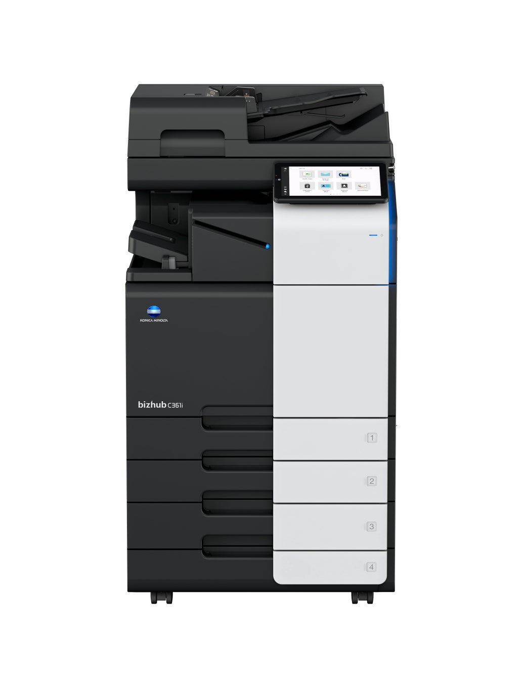 「bizhub(ビズハブ)1i シリーズ」はその使いやすさと多様な働き方に合わせた多彩な機能で、働く人々をサポートします。操作パネルのデザインは人間工学に基づいて設計されており、角度調整が可能な10.1インチ大型タッチパネル上で、スマートフォンのように直感的な操作を実現しています。また、複合機専用アプリケーションを提供する「Konica Minolta MarketPlace」から業務の効率化に貢献する様々なアプリケーションをダウンロードすることで、業務の必要に応じて機能を追加することができます。